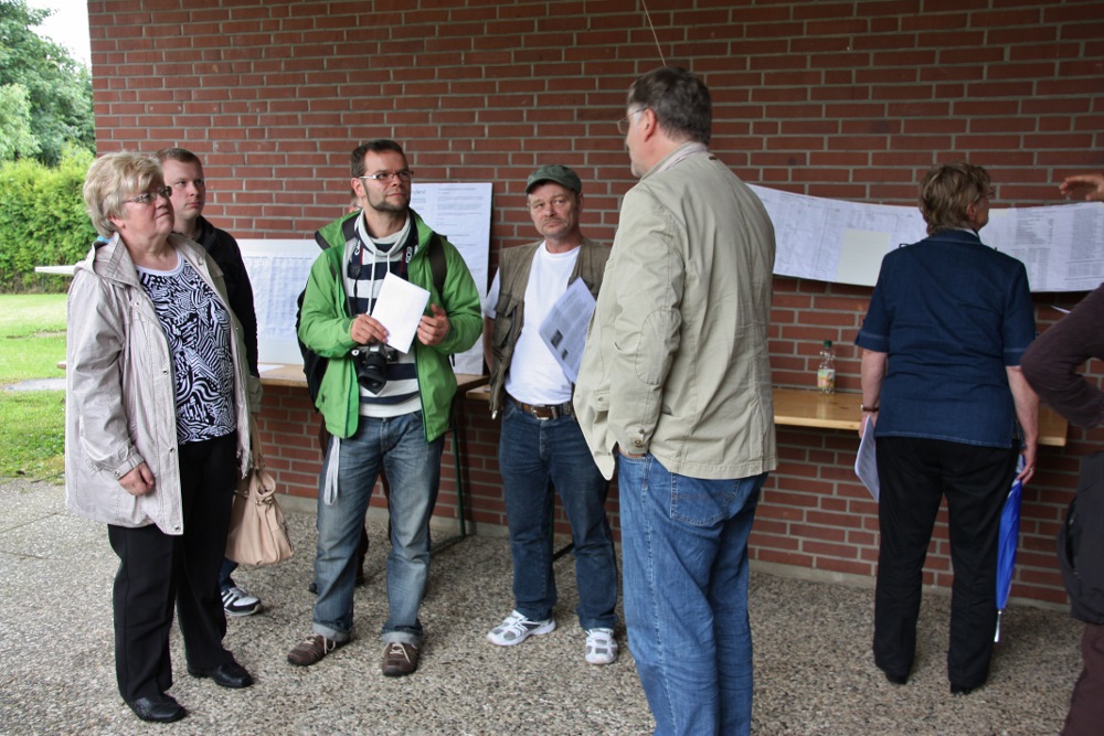de 750 Johrfier in Schierhorn mit Pastor Röhrs aus Scheeßel Das Liedblatt zum Gottesdienst gibt es HIER ![]() und rund 100 Gästen, ![]() und mit dem Posaunenchor aus Hanstedt. ![]() ![]() * * * ![]() Samtgemeindebürgermeister Olaf Muus, der Bürgermeister des Nachbarortes Jesteburg, Uto Heitmann, Jörg Gehrigk aus Schierhorn, der stv. Landrat Heiner Schönecke und unser Bürgermeister Gerhard Schierhorn (von links nach rechts) werden die Festreden halten. ![]() Bürgermeister Gerhard Schierhorn ![]() ![]() ![]() Stv. Landrat Heiner Schönecke ![]() ![]() ![]() ![]() Samtgemeindebürgermeister Olaf Muus ![]() ![]() Jesteburgs Bürgermeister Udo Heitmann ![]() Jörg Gehrigk ![]() Zum 700-jährigen Bestehen von Schierhorn vor 50 Jahren wurde von der Gemeinde Jesteburg die gezeigte Erinnerungstafel überreicht. Diese im Schierhorner Feuerwehrhaus verwahrte Tafel gab vor rund 2 Jahren den Anstoß für die Vorbereitungen zu der 750-Jahr-Feier. ![]() Ein Seniorentisch, von l.n.r.: Horst Rademacher (80), Elke Rademacher (77), Christa Richter (77), Maria Hartig (83) und Christa Ziegert (79) ![]() ![]() Die Presse war vertreten mit Christa-Maria Brockmann vom Winsener Anzeiger (links) und Katja Bending von der Kreiszeitung Wochenblatt (rechts). ![]() Der Schierhorner Spielmannszug trifft auf dem Festplatz ein ![]() und die Weseler Heidemusikanten spielen zum anschließenden gemeinsamen Mittagessen. * * * Am Nachmittag traf sich im Feuerwehrhaus der Clan all derer, die den Nachnamen 'Schierhorn' tragen ![]() zum Klönschnack, Meinungs- und Gedankenaustausch und um Neues aus der "Familie" zu erfahren. ![]() Auf der Wiese neben dem Festplatz stellten Vereine sich vor: Am Stand des Spielkreises "Arche Noah" wurden begeister HÜTE gebastelt: ![]() Maren Henck und Elisabeth Frede ![]() ![]() ![]() ![]() ... steht nicht nur Kindern gut! Die Anglergemeinschaft Veddel von 1965 e.V., die in Schierhorn zwei Angelteiche gepachtet hat, bringt Interessierten die Handhabung einer Angel näher: ![]() ![]() Die Frewillige Feuerwehr begeistert auch die Allerjüngsten mit Wasserspielen: ![]() ![]() ![]() ... Sackhüpfen und anderen Spielen. ![]() Die Schierhorner Feuerlöschfahrzeuge 1904 und heute. ![]() "Hey, wo bleibt das Wasser...?" ![]() Der Spielmannszug des Schützenvereins stellt Buttons her ![]() und wirbt um dringend erforderlichen Nachwuchs! ![]() JEDER hatte die Möglichkeit, auf dem Schießstand einen Schuss auf die Ehrenscheibe zum 750-jährigen Bestehen Schierhorns abzugeben. Das war ein schöner Tag für Schierhorn! Von einem kräftigen Regenschauer in der Mittagszeit einmal abgesehen, hat das Wetter gut mitgespielt. Erst gegen Abend kamen dichtere Regenwolken auf - doch der abschließende FESTBALL findet ja ohnehin im Saal statt... Fotos: © Jens Oldach |