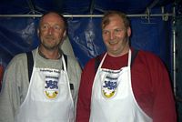... und Harald strahlte nach der bereits früh verkauften "letzten" Portion Zaziki mit Claus (hier mit Lederhut aus Australien) um die Wette. |