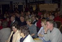 21.3.04 Theater in Schierhorn Einer langjährigen Tradition folgend gastierte die TÖSTER SPEELDEEL wieder einmal im zum Theatersaal umfunktionierten Schützenhus. Rund 80 Zuschauer amüsierten sich köstlich bei der plattdeutschen Komödie von Wilfried Wroost "Mien Mann, de fohrt to See!" und spendeten am Ende begeistert Beifall. Mit zehn Laienschauspielern aus allen Altersklassen war das Ensemble dieses mal besonders groß - und die mitgebrachte Bühne mit vielen technischen Rafinessen schon fast zu klein. Ein gelungener Abend, lediglich das Gläschen Pausen-Sekt (es gab immerhin zwei Pausen!) wurde von einzelnen Zuschauern vermisst. (Bilder zum Vergrößern anklicken) |