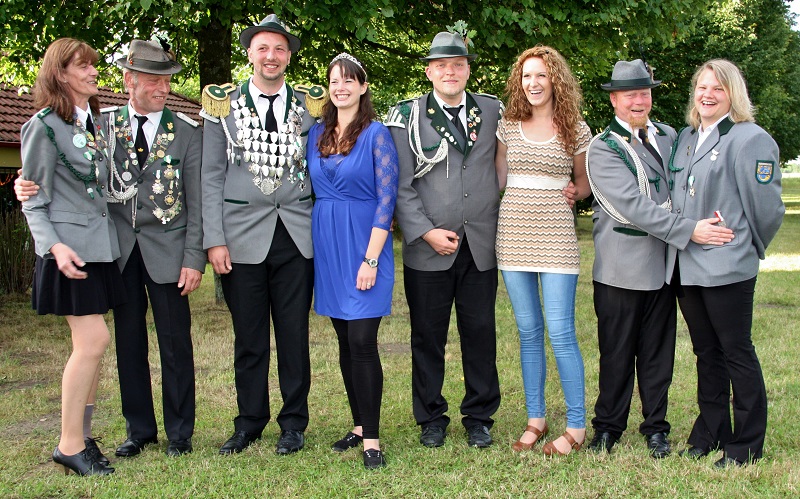hat einen neuen Schützenkönig Anders als in manchen anderen Orten gab es in Schierhorn keine Probleme, auch in diesem Jahr einen neuen Schützenkönig zu finden. Unter mehreren Bewerbern konnte Christian Baasch letztlich den Vogel abschießen. Mehr dazu auf der Seite des Schützenvereins. Schützenkönig 2014: Christian Baasch Hier auf dem Gruppenbild mit Adjutanten und Ehefrauen/Partnerinnen Von links nach rechts: Liane und Holger Nottorf, Christian Baasch und Sandra Meier, Fabian und Linda Schmeling, Manuel Rochow und Janine Jordan |