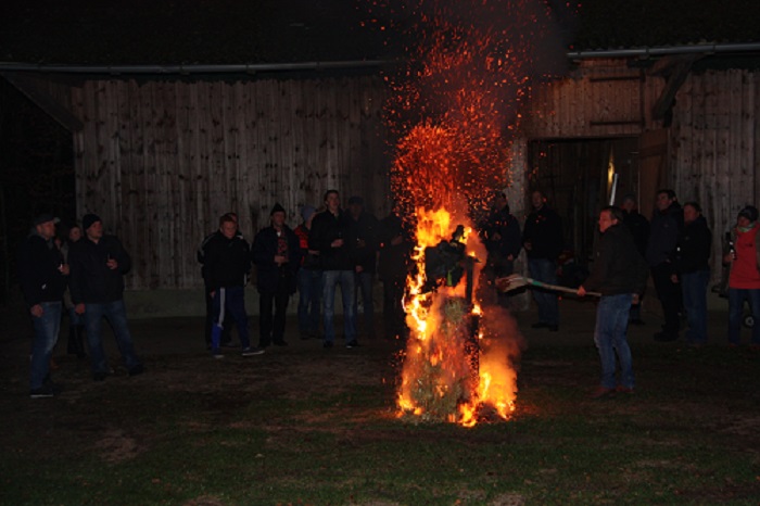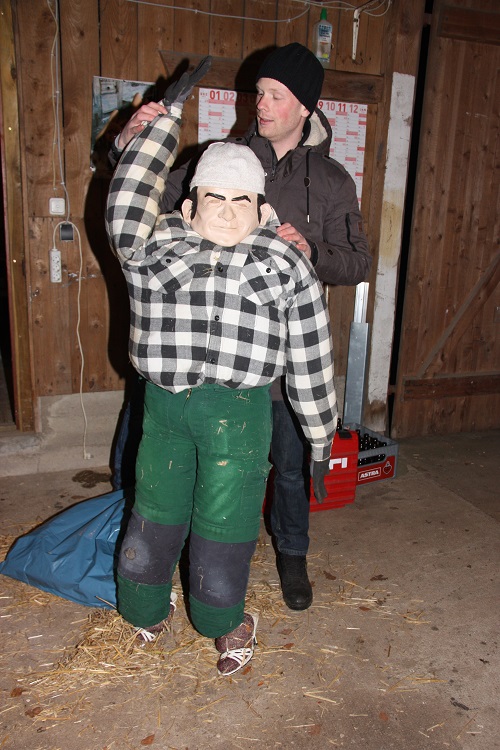 Donnerstag, 22. Januar 2015 Am Anfang steht immer das Verbrennen des FASLAMSKERLS des Vorjahres Danach, während andere den Saal schmücken, wird dann der FASLAMSKERL 2015 mit viel Liebe zum Detail zusammengenäht, -geschraubt, -gestopft... FERTIG! Und los geht der Abtransport ins Schützenhus... Das Schinkenbrot wartet schon! |